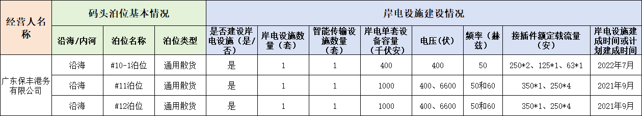 保豐港務(wù)岸電系統(tǒng)技術(shù)參數(shù)公示